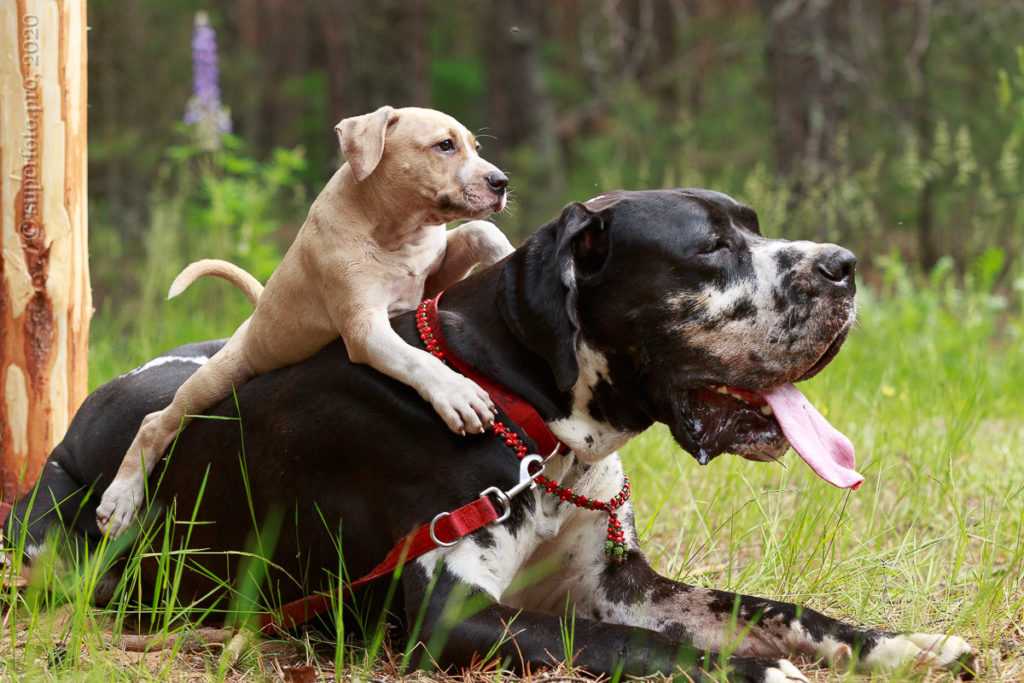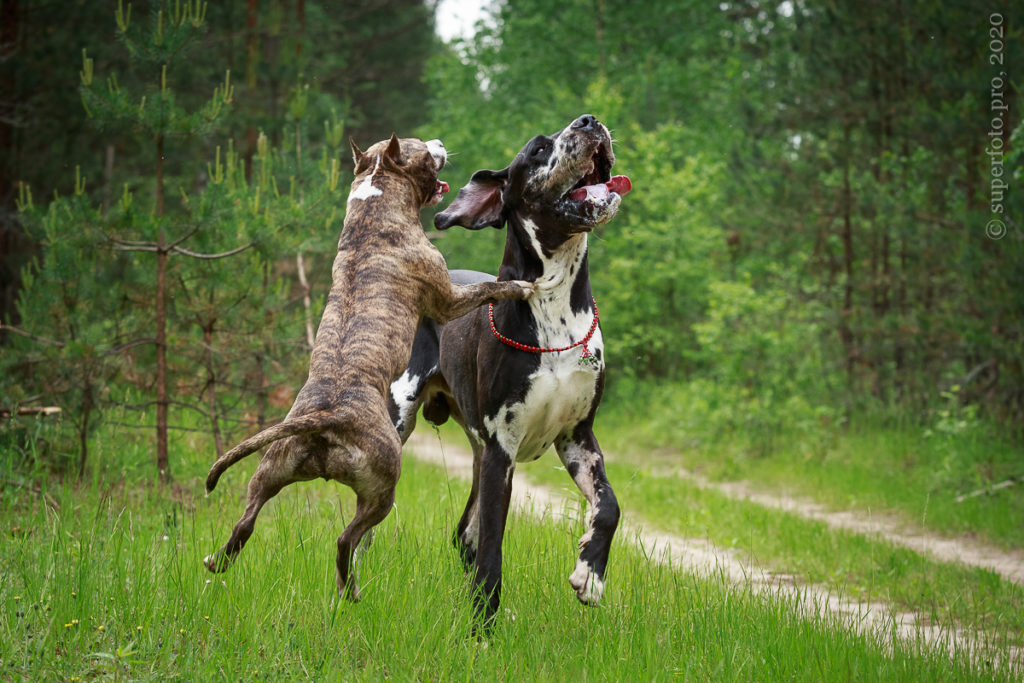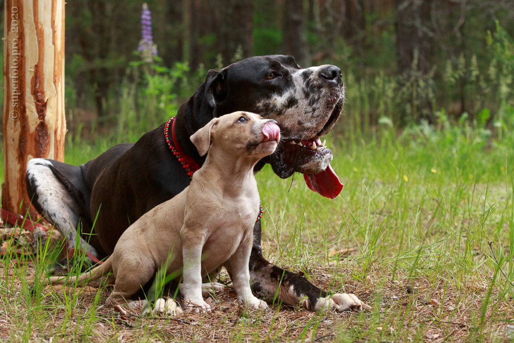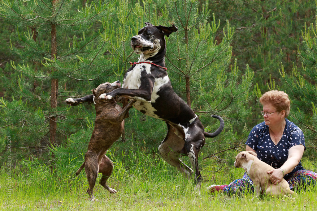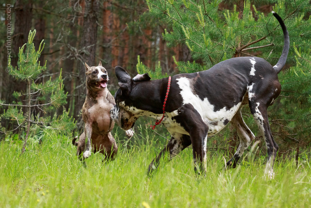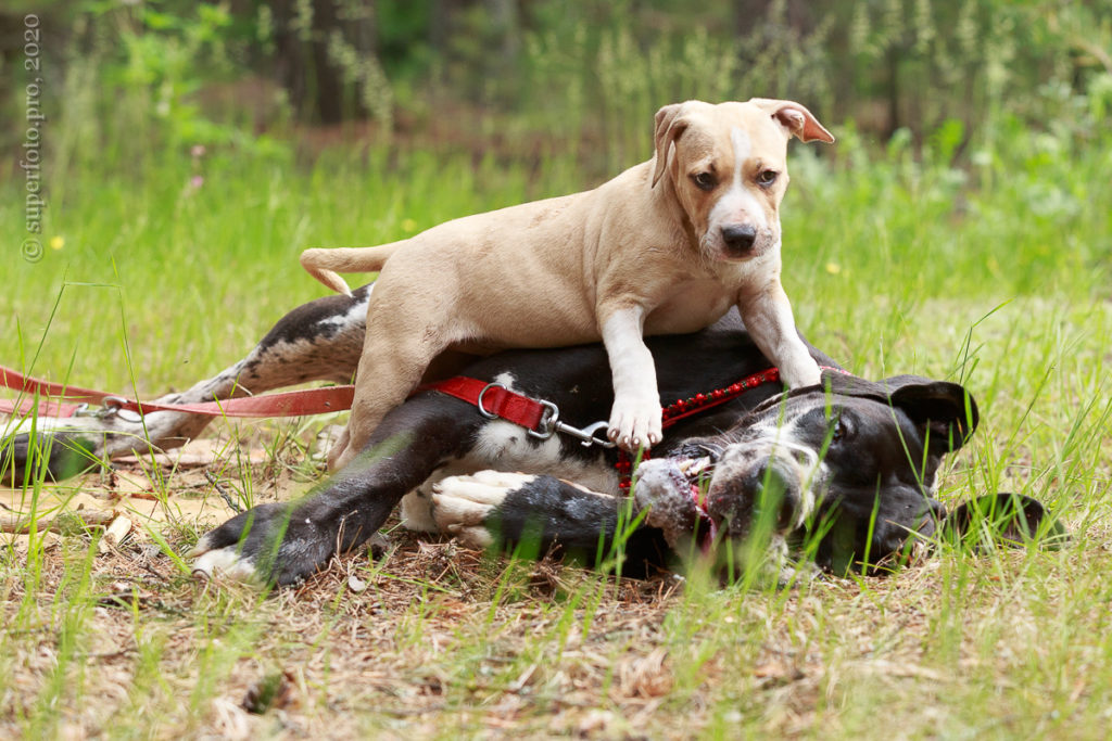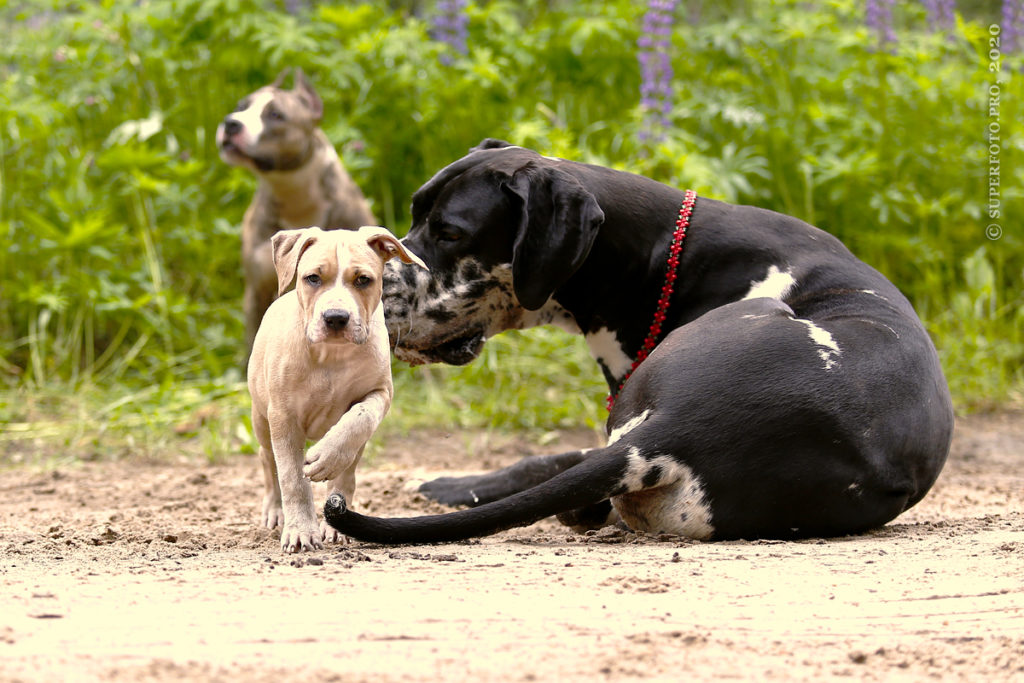 В съёмке в качестве ассистентов принимали участие мой немецкий дог Бест оф Ройс Норд (Стёпа) и амстаффка заводчицы щенка Tcenniy Prize Empress (Эми).