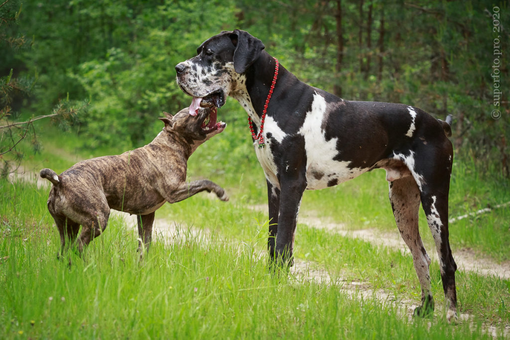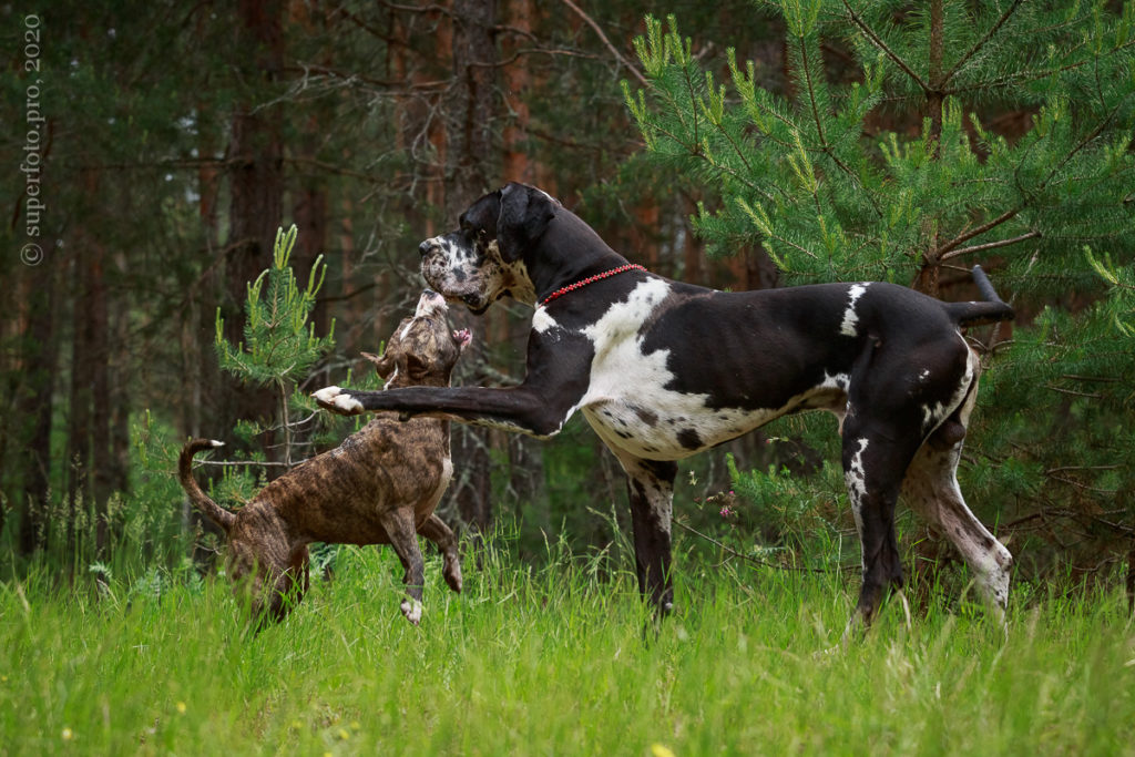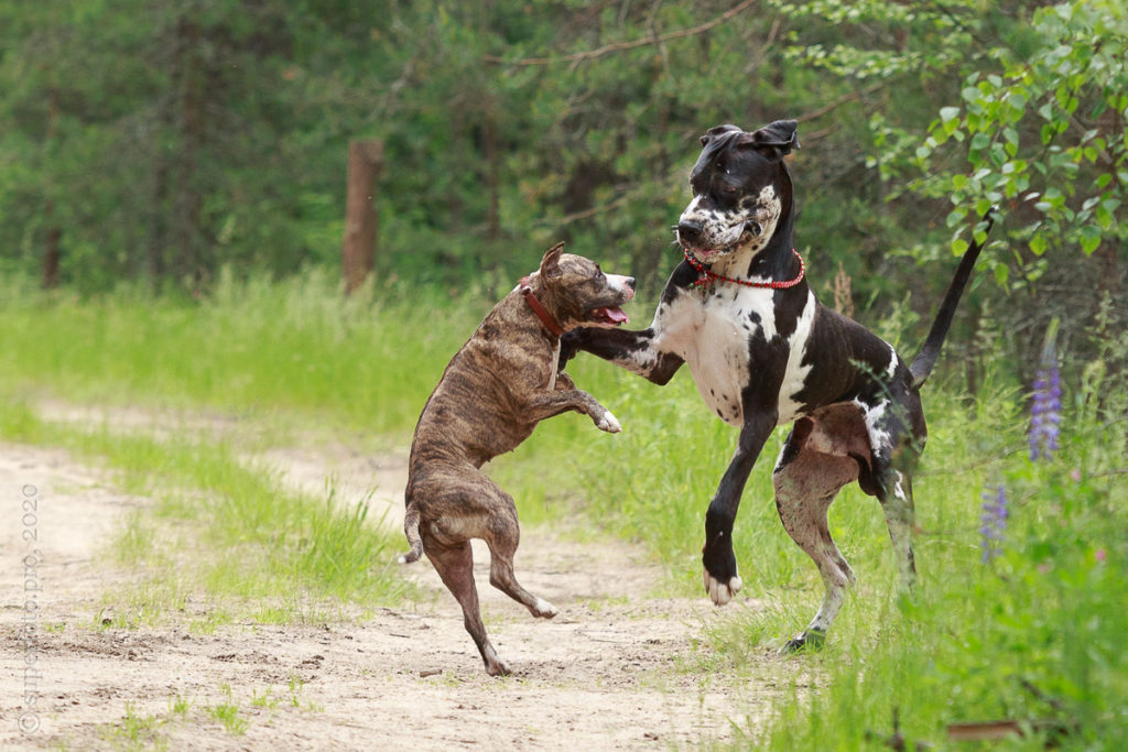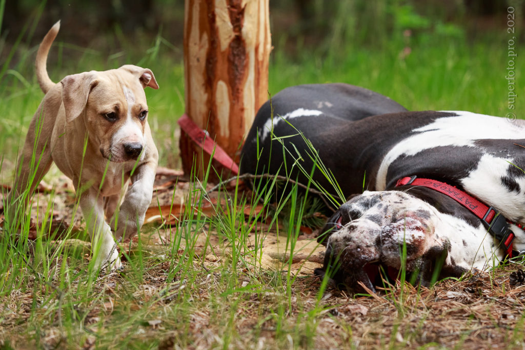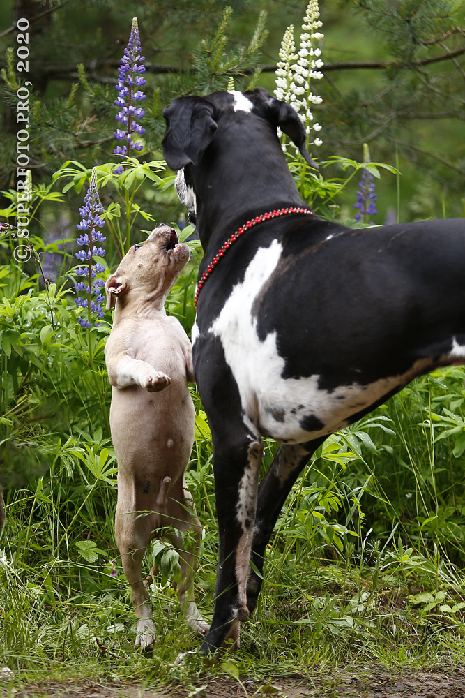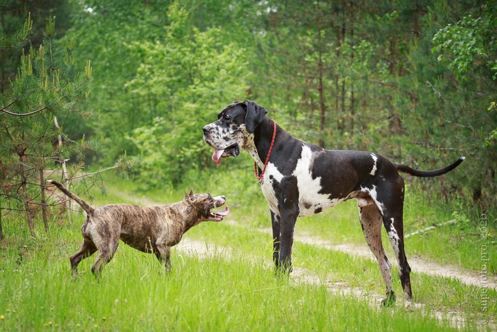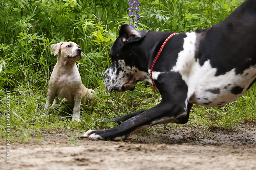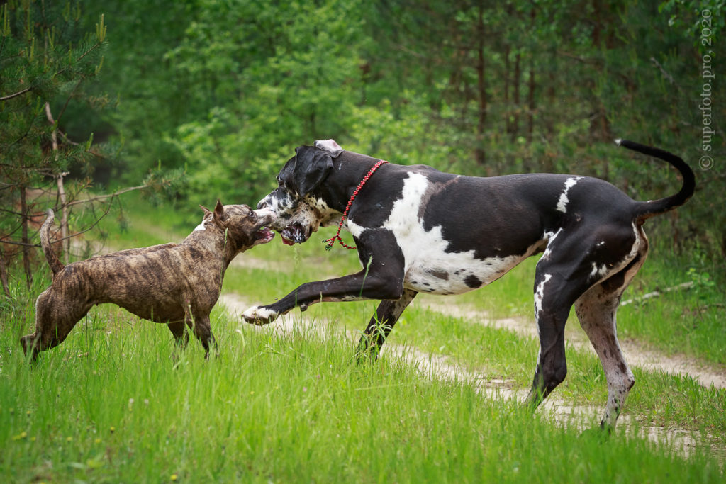 В съёмке в качестве ассистентов принимали участие мой немецкий дог Бест оф Ройс Норд (Стёпа) и амстаффка заводчицы щенка Tcenniy Prize Empress (Эми).